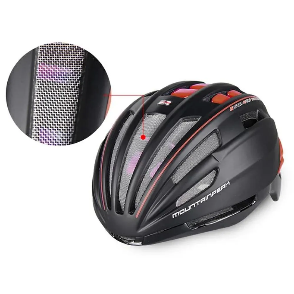 Шлем велосипедный MountainPeak RACE X – крутой и модный с вентиляционными отверстиями считается лучшим предложением этого года. Дизайн привлекает внимание, делает аксессуар заметным в сравнении с другими моделями. Наличие в комплектации съёмный зеркальных очков подчеркивает особые требования райдера к аксессуарам. Покупка шлема гарантирует стопроцентную безопасность головы и защиту райдера от попадания пыли при продолжительной езде. Купить шлем по лучшей стоимости воспользоваться бесплатной поддержкой и другими приятными бонусами производителя предлагает наш интернет-магазин.