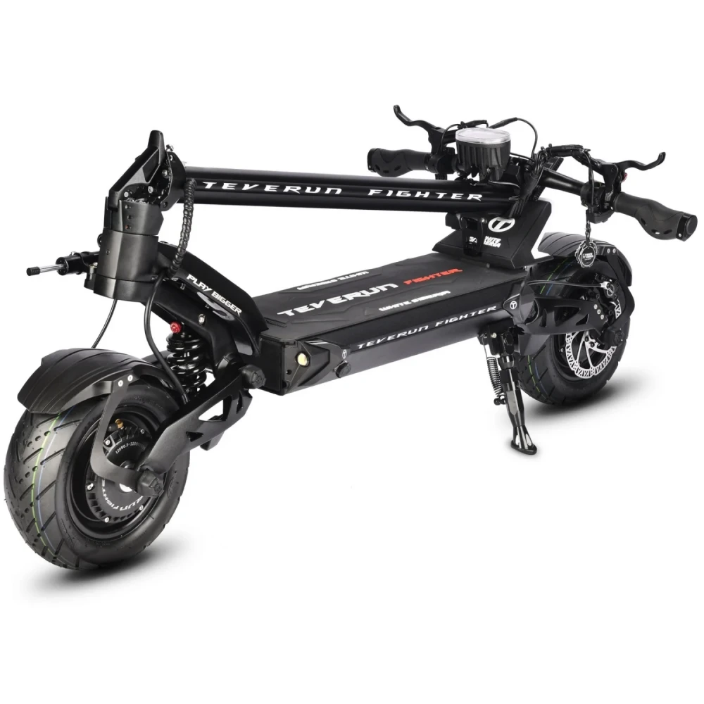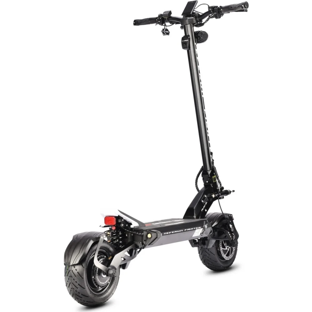 Купить электросамокат WHITE SIBERIA TEVERUN FIGHTER 6000W. Модель TEVERUN FIGHTER 6000W представляет хорошую линейку мощных электросамокатов от компании WHITE SIBERIA. Электросамокат TEVERUN FIGHTER 6000W имеет полный привод и электродвигатель 2 x 60V 3000W, суммарно 6000W на электрической тяге, что помогает достигать на дороге скорость до 85 км/ч и получить яркие эмоции от поездки по дорогам вашего города. Модель TEVERUN FIGHTER электросамоката была создана для поклонников хорошей и быстрой езды по городу. TEVERUN FIGHTER 6000W хорошо заряжается от обычной электрической розетки в домашних условиях за 17 ч и имеет запас хода до 80 км на одном заряде. Электросамокат TEVERUN FIGHTER 6000W имеет яркую LED подсветку и электросамокат хорошо заметен на дороге в темное время суток, что не оставит вас без внимания на дорогах. Купить электросамокат WHITE SIBERIA TEVERUN FIGHTER 6000W и аксессуары для вашего электросамоката можно в нашем интернет магазине на сайте, звонок менеджеру  гарантирует хорошую покупку.