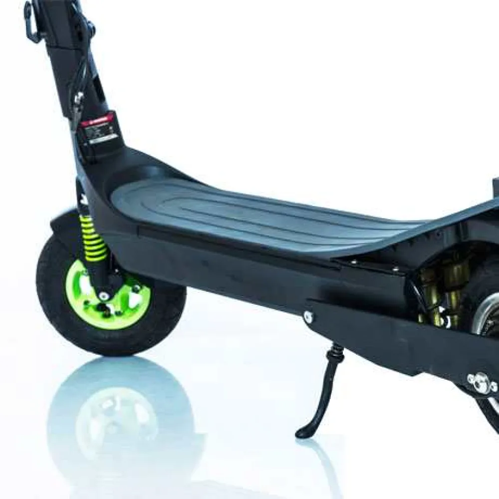 Модель компактная, легкая в управлении, легко складывается для транспортировки в багажнике или транспорте. На раме предусмотрен фиксатор, чтобы самокат случайно не раскрывался и не закрывался.