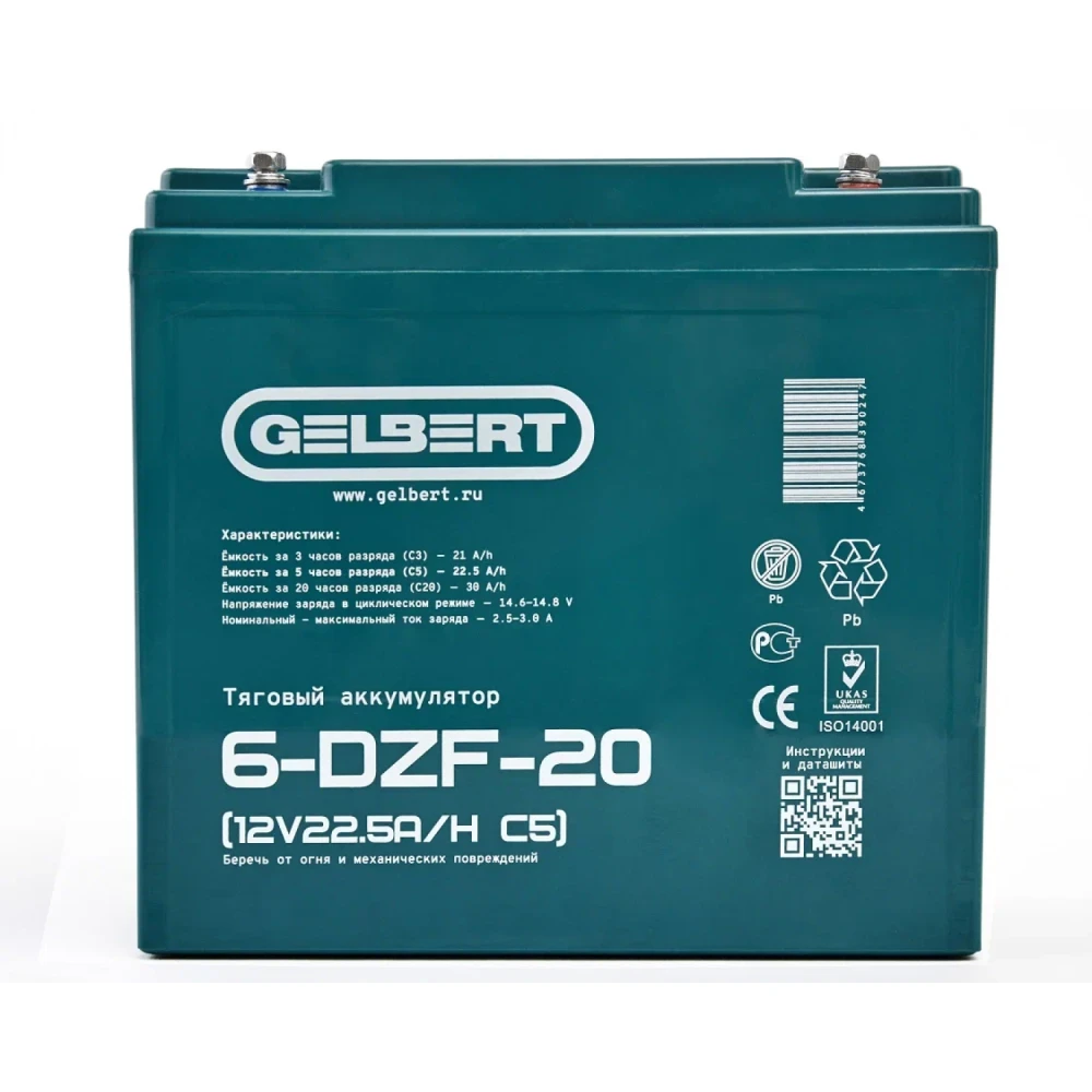 Тяговый аккумулятор Gelbert 6-DZF-20 (12V22.5A/H C5)